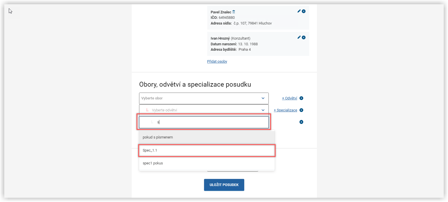 Dále je možné přidat Konzultanty posudku a to kliknutím na Přidat osoby.